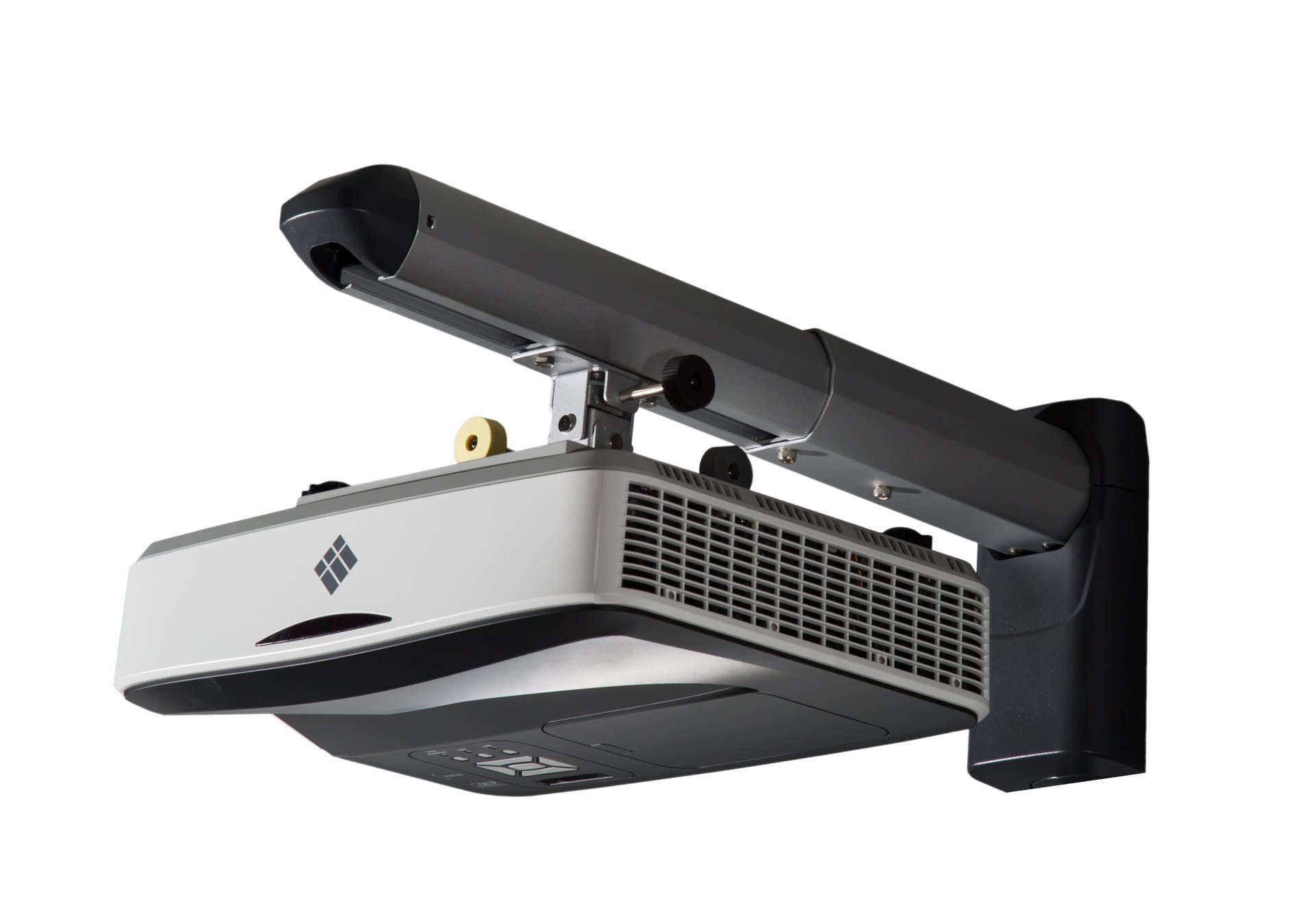 - Ultra courte focale : le plus communément utilisé dans les salles de classe ou réunion, ce vidéoprojecteur est positionné au mur juste au-dessus de la surface de projection (généralement un tableau blanc).